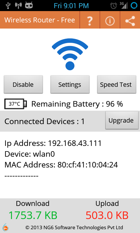 Este Portable Wi-Fi Router é outra app para Android que permite criar rapidamente um hotspot Wifi no vosso smartphone. Ideal para partilharem por exemplo o vosso pacote de dados 3G/4G por outros dispositivos. Em poucas linhas... com uma app destas não precisam ter varias mensalidades, pois podem partilhar o vosso pacote de dados do smartphone com o tablet e até com o computador portátil se precisarem.